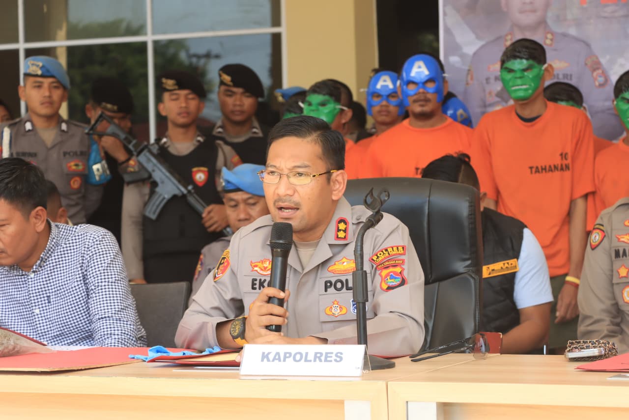 ”Kami ingin menyampaikan pesan kepada publik, terutama kepada mereka yang merasa ‘jagoan’ dan arogan, bahwa setiap perbuatan melanggar hukum pasti akan dipertanggungjawabkan sesuai dengan hukum dan undang – undang yang berlaku,” tambah Kapolres.