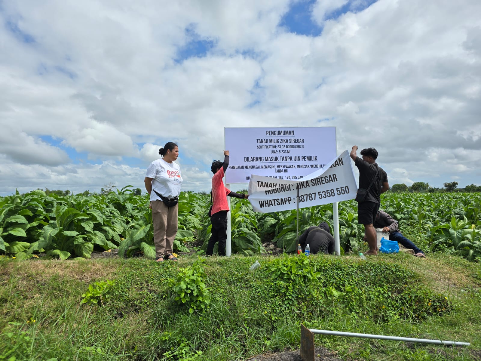 Tak hanya bukti kepemilikan lahan, Zika juga menyerahkan bukti-bukti bahwa lahan tersebut sudah ditanami tembakau oleh oknum warga yang tidak bertanggung jawab.