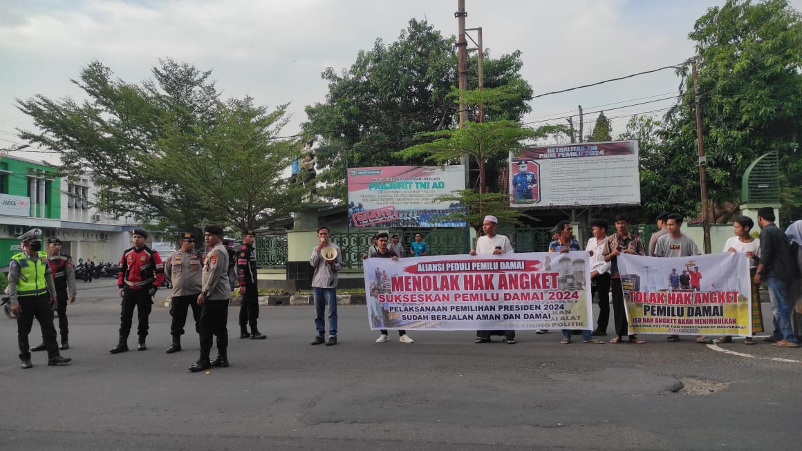 Ketua Aliansi Peduli Pemilu Damai (APPD) NTB Saidan mengatakan, sore ini pihaknya turun ke jalan dan menyuarakan menolak hak angket pemilu damai yang saat ini marak di isukan.