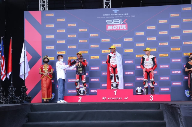 Lagu Indonesia Raya dan Bendera Merah Putih pun kembali berkibar di Sirkuit Mandalika setelah pembalap asal Indonesia Veda Ega Pratama berhasil meraih podium pada race pertama balapan Idemitsu Asia Talent Cup (IATC).