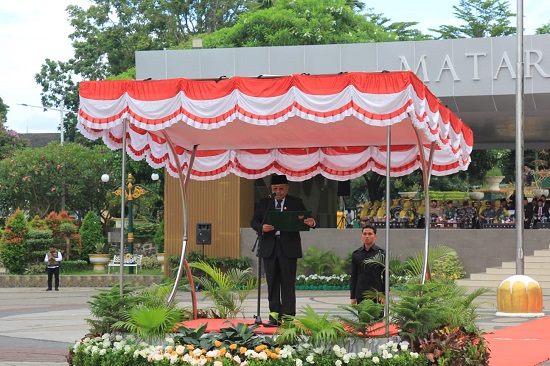 Bertindak sebagai pembina upacara Setda Prov NTB H. Lalu Gde Gita Ariyadi sedangkan pemimpin upacara Zamroni Aziz Guru MAN 2 Mataram. Petugas upacara termasuk pengibar bendera berasal dari pelajar MAN 2 Mataram dan Komandan Kompi sebanyak 30 orang berasal dari pelajar MAN 3 Mataram